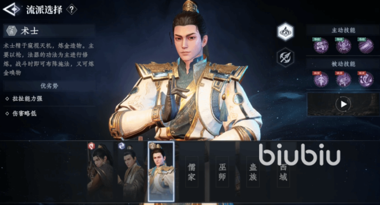术士能窥探天机,拥有操控气运和制造法宝的独特能力,他们使用的武器有书、枪和法器,通常在战斗中会以结阵和施法为主,他们在伤害方面比较低,但是拉扯能力强,可以结成功能多样的阵法,包括禁锢、传送等,来让队友有一定的进攻机会,并且还带有不错的辅助能力,可以治病救人,帮助持续恢复血量和精力等,术士的法阵类型分为结界和造物,在使用结界法阵的时候需要双脚塌地,让法阵从地面逐渐拓展到其他区域后展示,放出远程或者buff系的技能,造物则是利用法阵来召唤出物品,比方说陷阱和召唤机关等,召唤的时候术士无法移动。