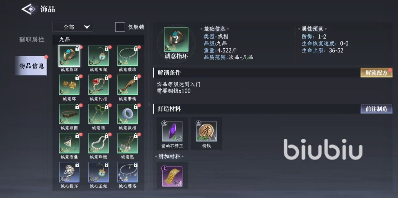 大家打开游戏的功能菜单之后,可以直接看到副职业的选项,游戏里的副职业主要分为两类,分别是采集和锻造。采集类型的副职业就包括挖矿、采玉、割草、采药、钓鱼、狩猎和种植。锻造副职业包括锻兵、铸甲、饰品、抄写、炼丹和烹饪。这两类职业其实很好理解,锻造类职业所需要的材料,都是由采集类所提供的。