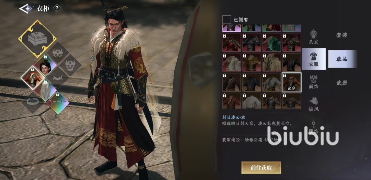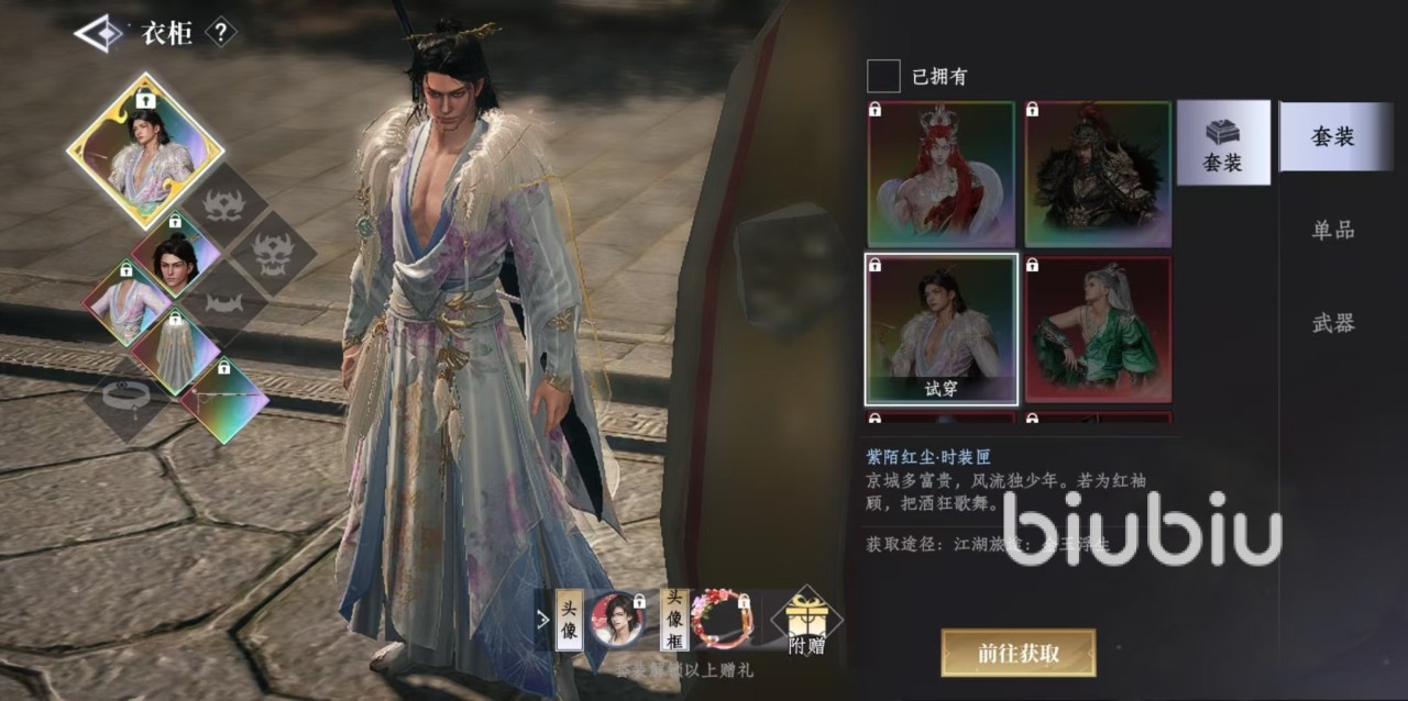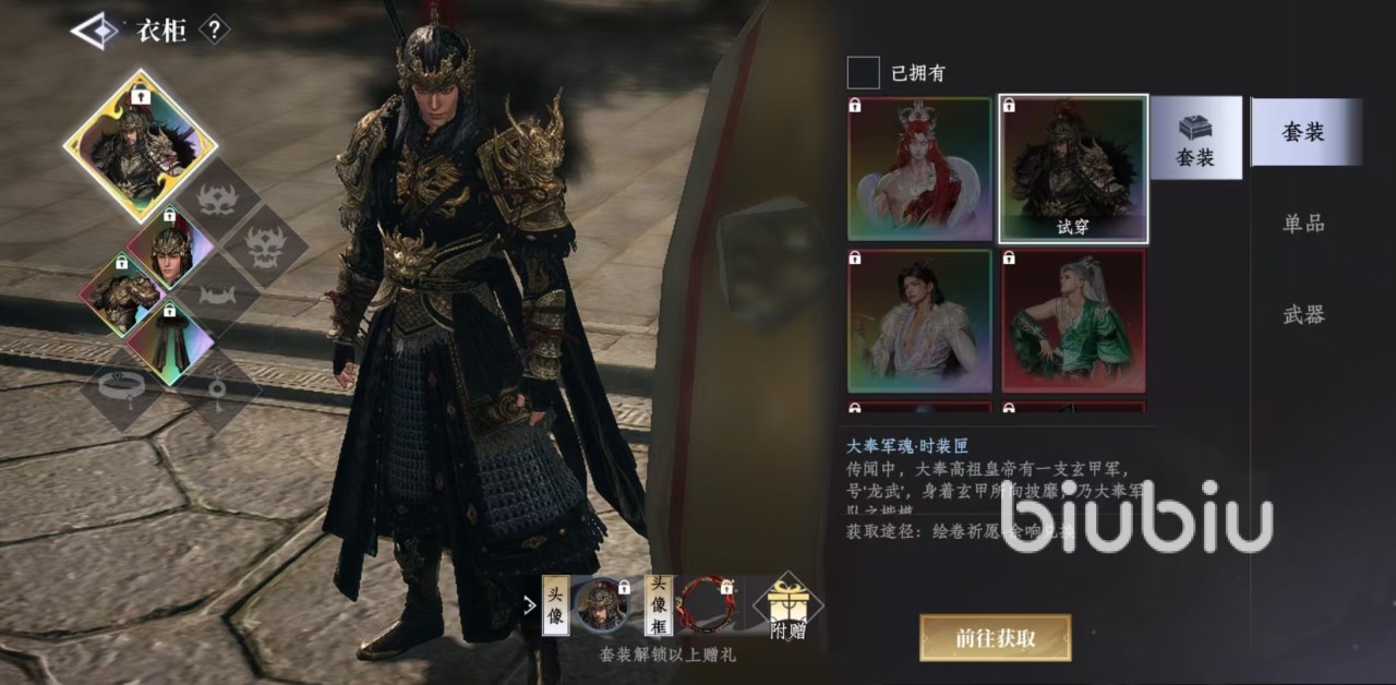大家在衣柜中可以看到有多种不同的选项,主要分为套装、单品和武器。套装是目前游戏主推的外观类型,所有都已经搭配完毕,非常符合玩家的审美,直接选择套装试穿,然后确定入手就可以了。每套外观的下面都有获取的途径和方式,直接点击前往获取,就能够成功入手。例如有些是通过战令解锁获得,有些是通过绘卷祈愿获得,还有些是通过宝钞购买等,在衣柜中操作非常方便。