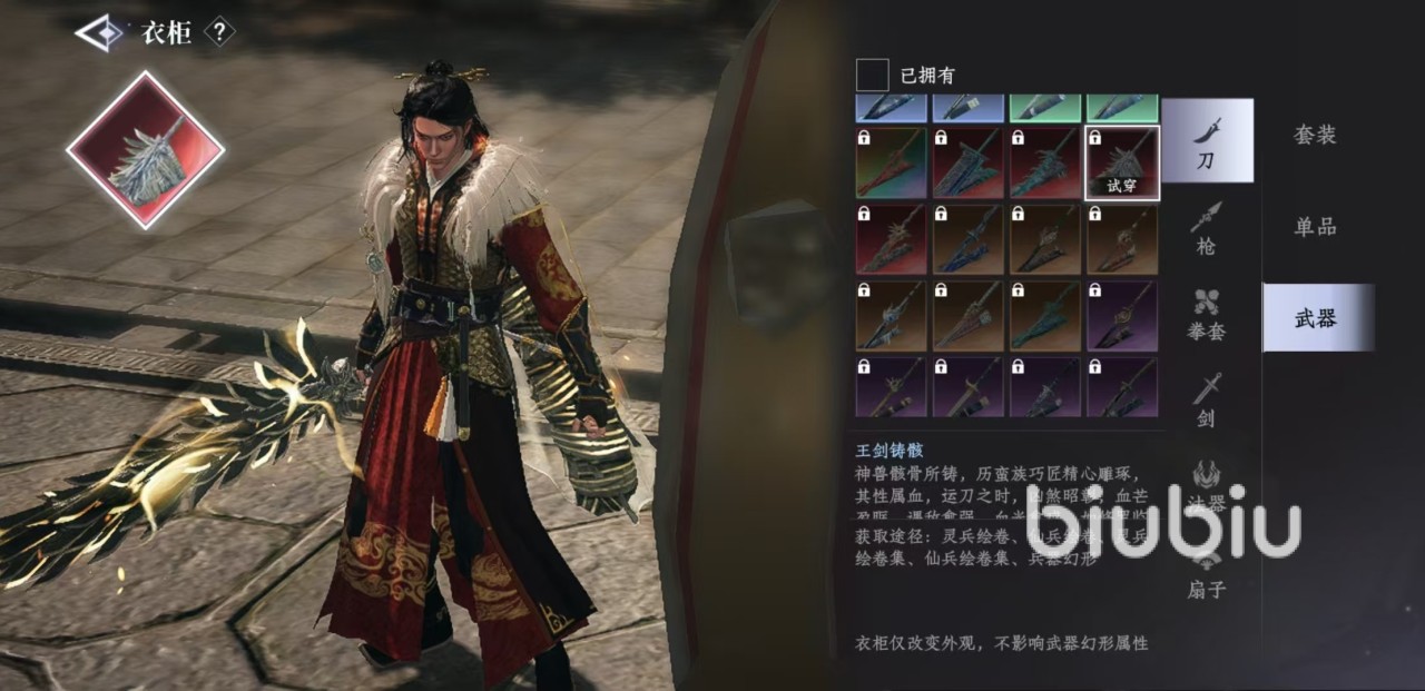 如果不喜欢套装,也可以通过单品选项自己进行搭配,适合一些喜欢动手的玩家去选,这些单品也都有不同的获取方式,同样可以在这里直接购买。最后是武器,武器也需要和自己其他的外观搭配起来,这样一套很合适的外观就搭配完毕了。当大家闲暇无事的时候,就可以多在衣柜中浏览一下这些外观套装或单品,提高一下自己的审美趣味,也是非常有乐趣的。