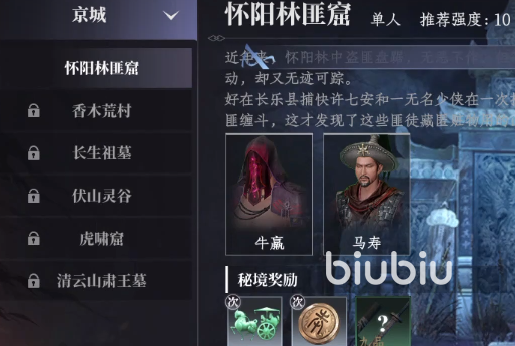 接下来咱们和于樊对话,接着我们就需要一起前往到怀阳林匪窟,这也是我们所遇到的第一个秘境副本。这是一个单人副本,本身需要我们的强度超过10便可以前往,整体的难度很低,基本上就是为了让我们练手和熟悉来准备的。接着进入副本,一开始我们和许七安一起行动,遇到的敌人基本上都是普通的喽喽。接着在门口的宝箱里面可以找到一些装备,虽然品质一般,但是现阶段我们没有装备,只能先用着。