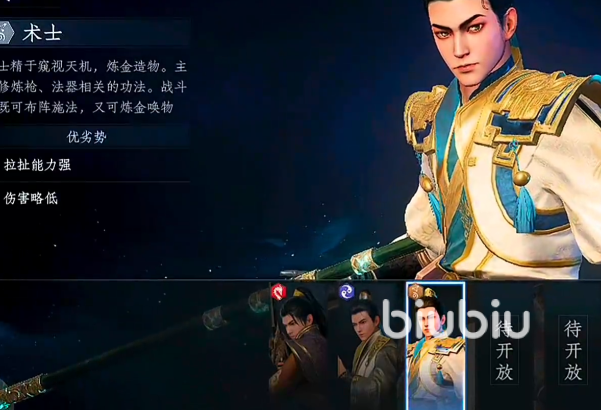 术士擅长运用神秘力量,他们会操控气运来诡探天机,制作出不同的法宝,是大丰世界的科学家,术士使用的武器有书、枪、法器,通常以结阵施法为主,术士的攻击手段相当多变,有结界类法阵可以释放出远程类攻击,或是给队友施加buff,造物法阵可以召唤出物品,比方说一些机关陷阱等来将敌人给束缚,九品术士还可以治病救人,持续回复队友的血量、精力等来让他们有持久的输出能力,整体来说术士在输出方面不强,但多样的法阵让其拥有了可以和敌人不断拉扯的能力,能帮助在战场上自保,同时给予队友输出的空间,提供buff和血量,有着很强的战略价值。
