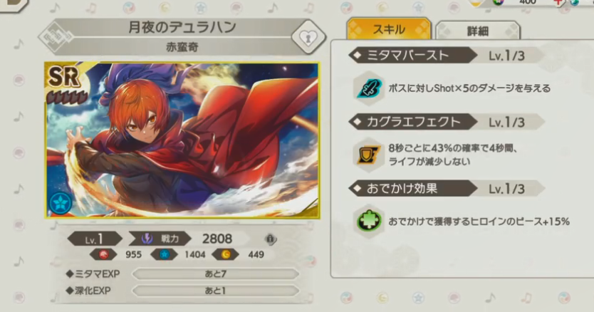 游戏中拥有五种难度,分别是简单、正常、困难等。最高难度模式需要前一模式全练,才能够开启。在音乐节奏闯关玩法中,玩家拥有SSR角色辅助,进程推进更顺利。