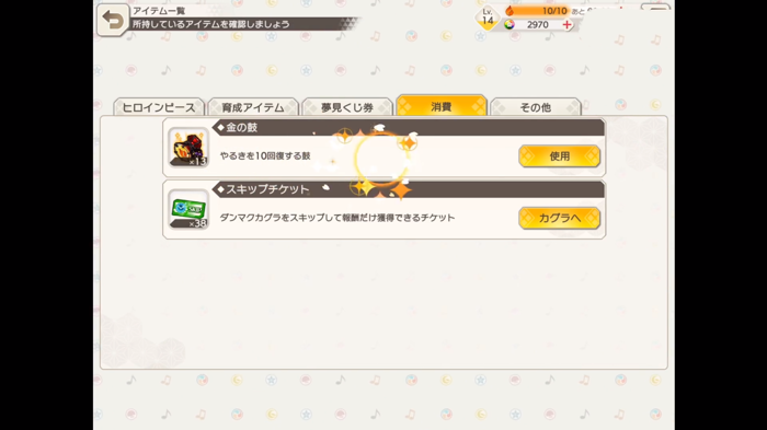玩家们在打谱的时候能够获得铃铛,bcd是银铃铛,以上的类推。虽说游戏是叫做弹幕神乐,但是游戏中拥有弹幕的曲目也就只有一首。不过这一首曲目却成为了玩家们刷铃铛的绝唱。因为在弹幕的时候,玩家们能够获得大量的经验,而且在弹幕曲目中玩家们也比较容易获得更高品质的铃铛。这样大家就能够比较容易提升一个人物的卡面。