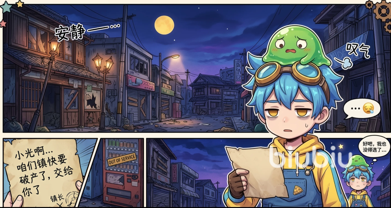 游戏背景设定是玩家接手了由于上一任镇长经营不善的百废俱兴的滨海小镇“辉夜镇”。通过合理调度,将小镇流水线配置完善,打造成一个不停运转的生产线,即使离线了也能持续获得收益。