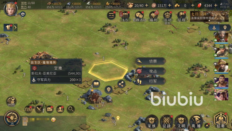 英雄体力:执行攻占,行军,强征等部队的指令时,都需要消耗部队所有英雄的体力;体力根据时间恢复,初始的上限100点,萌新期有额外50点上限,通过研究所还能额外获得50点上限,能使用面包道具快速回复。