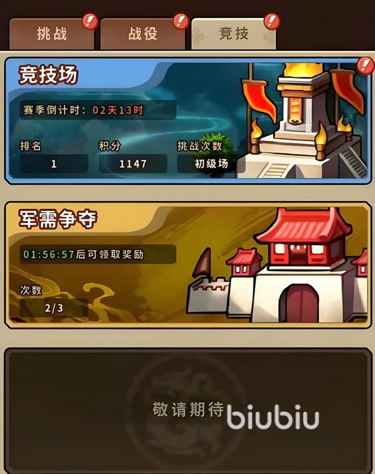 竞技场是属于游戏竞技玩法中最重要的一项,大家通过主页找到玩法后直接选择竞技,第1个选项就是竞技场。竞技场在每天的6:00~22:00开放,一共设有6个段位分组,分别是最开始的入门场,到后续的初级场、中级场、高级场、大师场一直到巅峰场。在开放时间内,玩家可以随时加入进来进行挑战,每天22点会关闭挑战,系统会根据玩家当前的组别和排名发放当天的奖励。