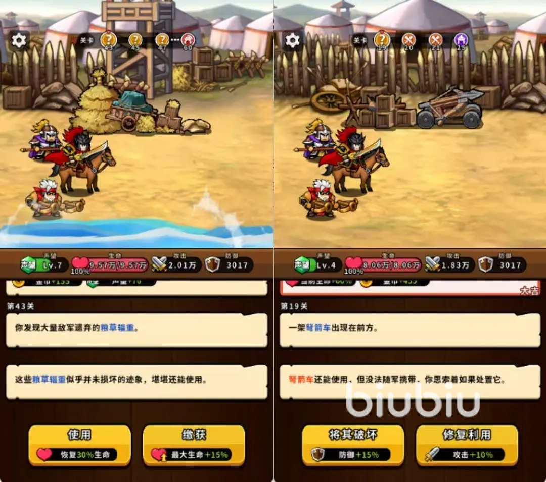 面对常规选项时,三个技能如果都和概率有关,可以刷新技能,也可选含有概率的,不过最好不要选3次行动后消失的技能,即便概率高,但是在初期使用还是比较浪费。如果是支线,也可继续选择加攻击力的。对于方士和仙人,方士进行交易时,签订对自己有利的条约,仙人的恩赐里选择能附加伤害的,比如连弩附毒。