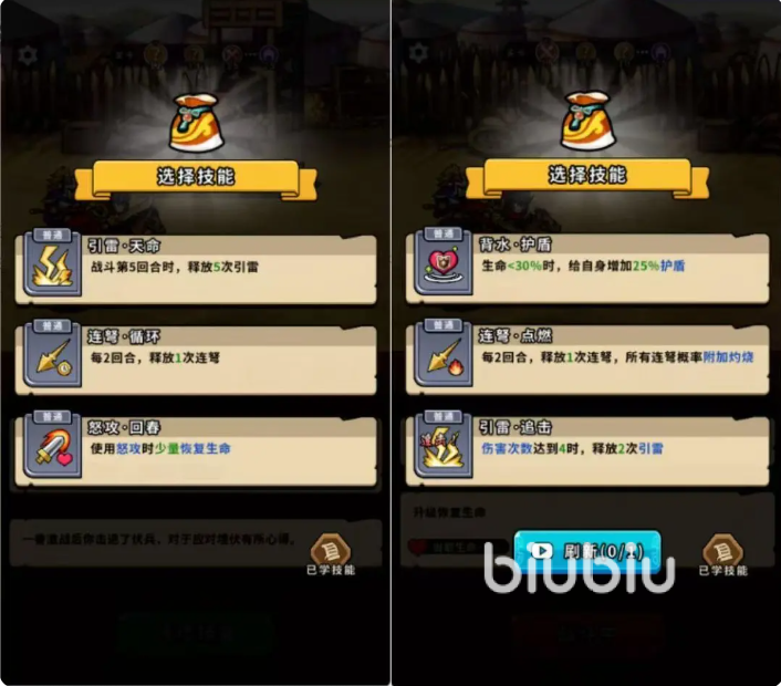 首先玩家们需要遵循”三步法则”,首选能提升攻击和伤害的技能;优先去选能一直触发的技能,其次才是选择概率触发的招式;如果没有出现攻击类的技能,可选增加防御,或者削弱对方攻击力的;如果是有关于生命值的招式,可选增加最大生命的技能。