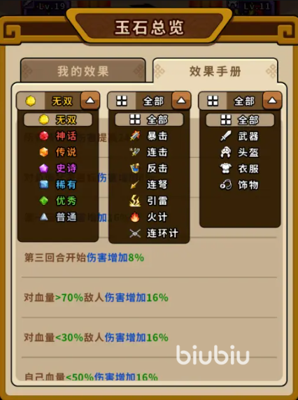 帝国史诗玉石所拥有的作用还是比较多的,会包含多个角度,覆盖攻击,还有生命等多个方面。传说以及品质以上的玉石还可以直接通过金刚石洗炼转换效果。不同品质消耗的金刚石数量也会有所区别,例如神话是5颗,无双是15颗,还有一颗传说。各个品质还有各个部位的玉石效果数量是完全不一样的。相同品质的玉石就没有什么明显的强弱问题,需要结合装备的效果去搭配。例如青龙偃月刀本身就有15%的暴击率,如果搭配有暴击伤害的玉石就可以增强收割能力。