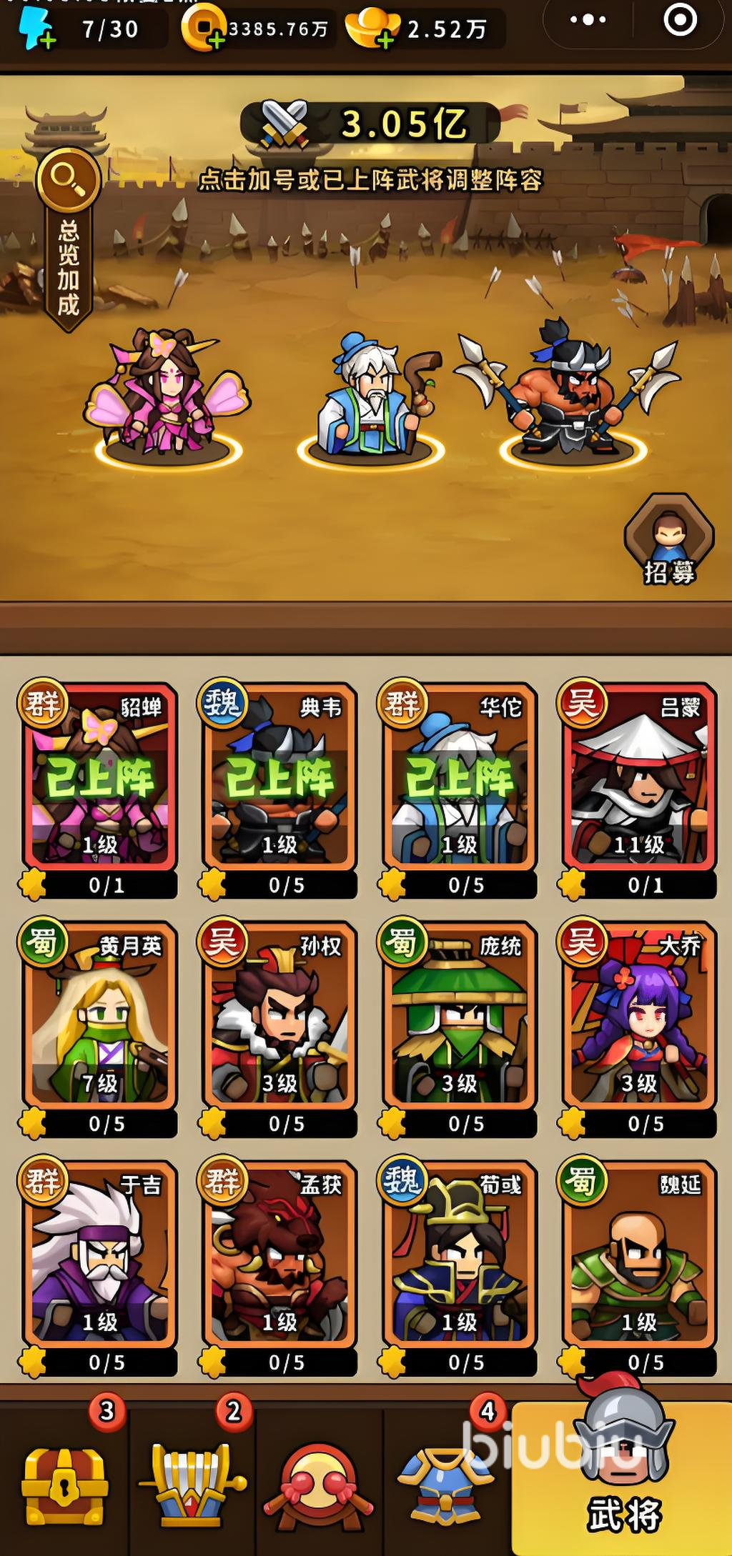 阵容的组成就是一个不能分配调动的主角加上四个可调动的武将,这些武将都可进行搭配不同的装备和位置来提高整体的战斗效果,要是玩家们可以将ssr作为中心进行搭配就可打造出超高战斗力的阵容,在武将的选择方面建议大家可以使用吕布和曹操这类角色,对于后续的养成和阵容搭配都有很好的提升效果。