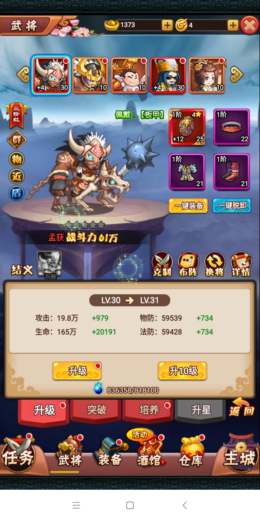 如果玩家的练度实在太低,要积极提高武将的等级,有条件的玩家还可购买神器增幅属性哦!