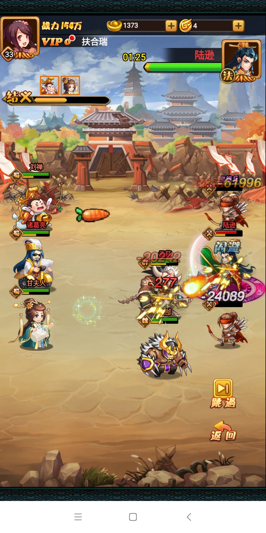 由于陆逊是吴国将领,因此玩家的后排作为蜀国武将要少承担25%的伤害,而甘夫人的大招也有不错的全体回复能力。该套打法的关键有两个:优先秒掉小怪和诸葛亮大招全中,前者能让肉盾多撑一段时间,后者则能保证陆逊放不出第二个大招,保障我方生存能力。