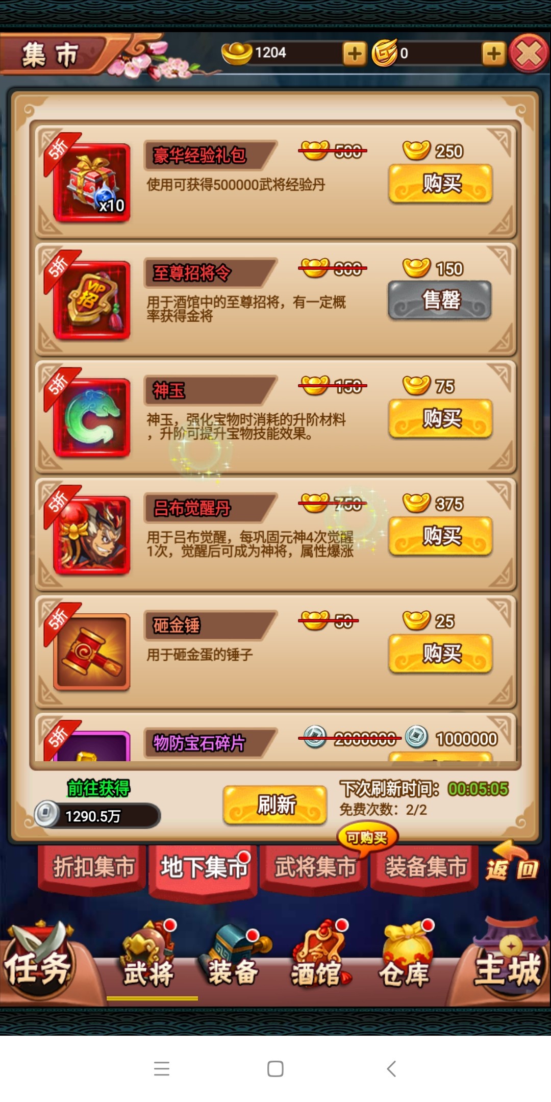 地下集市中每隔一段时间都会刷新折扣商品,玩家可消耗元宝或银币购买。和押镖不同,集市只会刷新特定的兵符书,但长期下来比押镖性价比更高。集市每天都有两次免费刷新机会,玩家不要忘记使用哦!