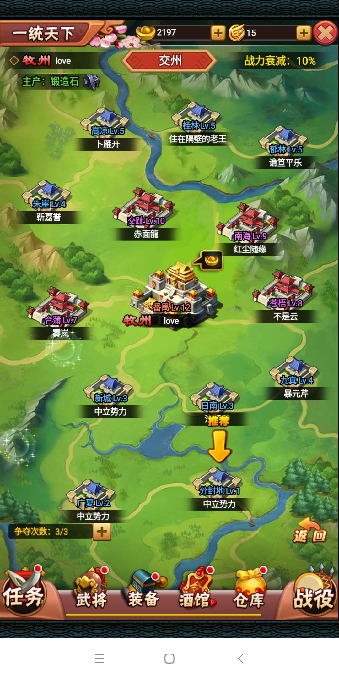 当我家攻下都城后,一定要派遣高品质守军驻扎,防止高战力的敌人窥探偷袭。根据所处位置的不同,各都城的生产资源也不相同:雍州是炼金石、交州是锻造石。都城资源生产最多可累积12个小时,因此玩家要及时领取哦!