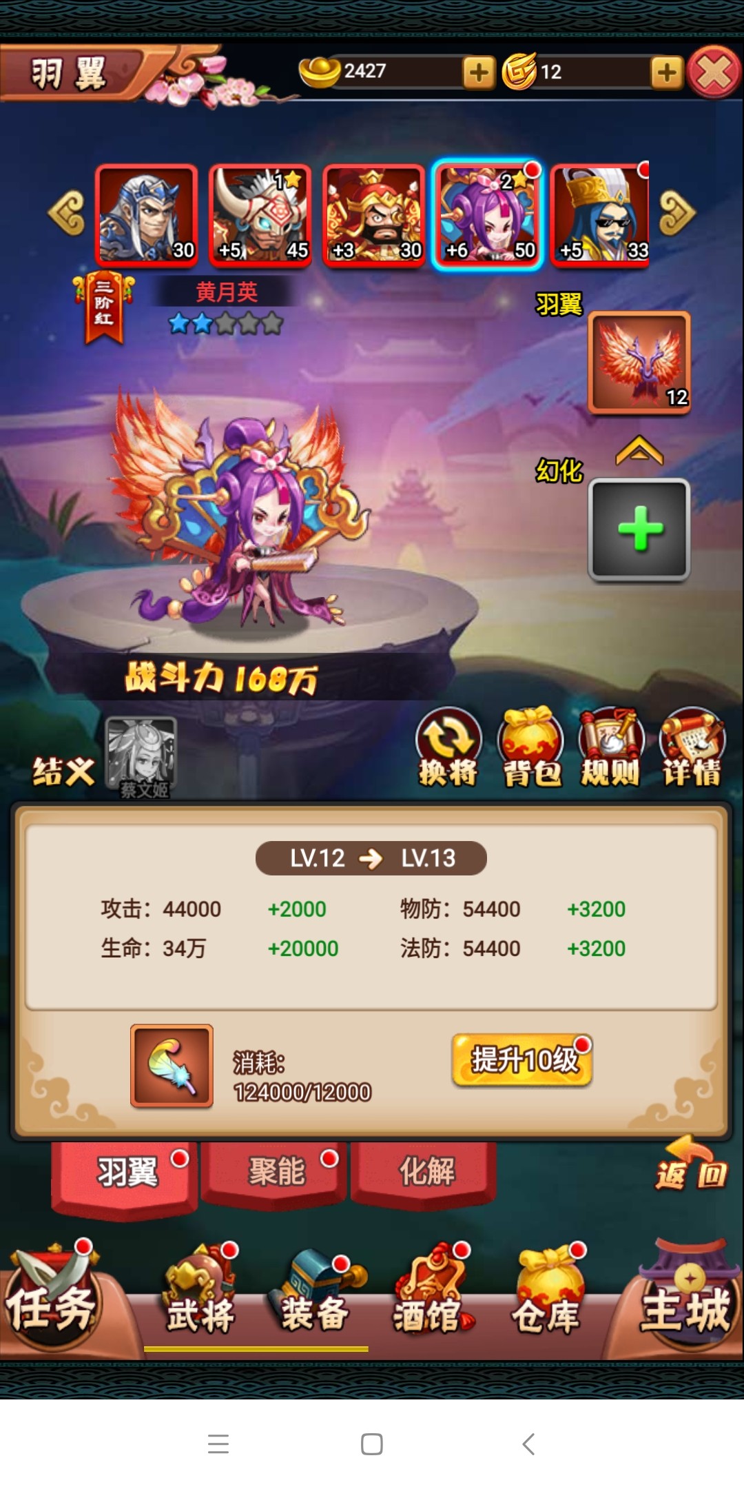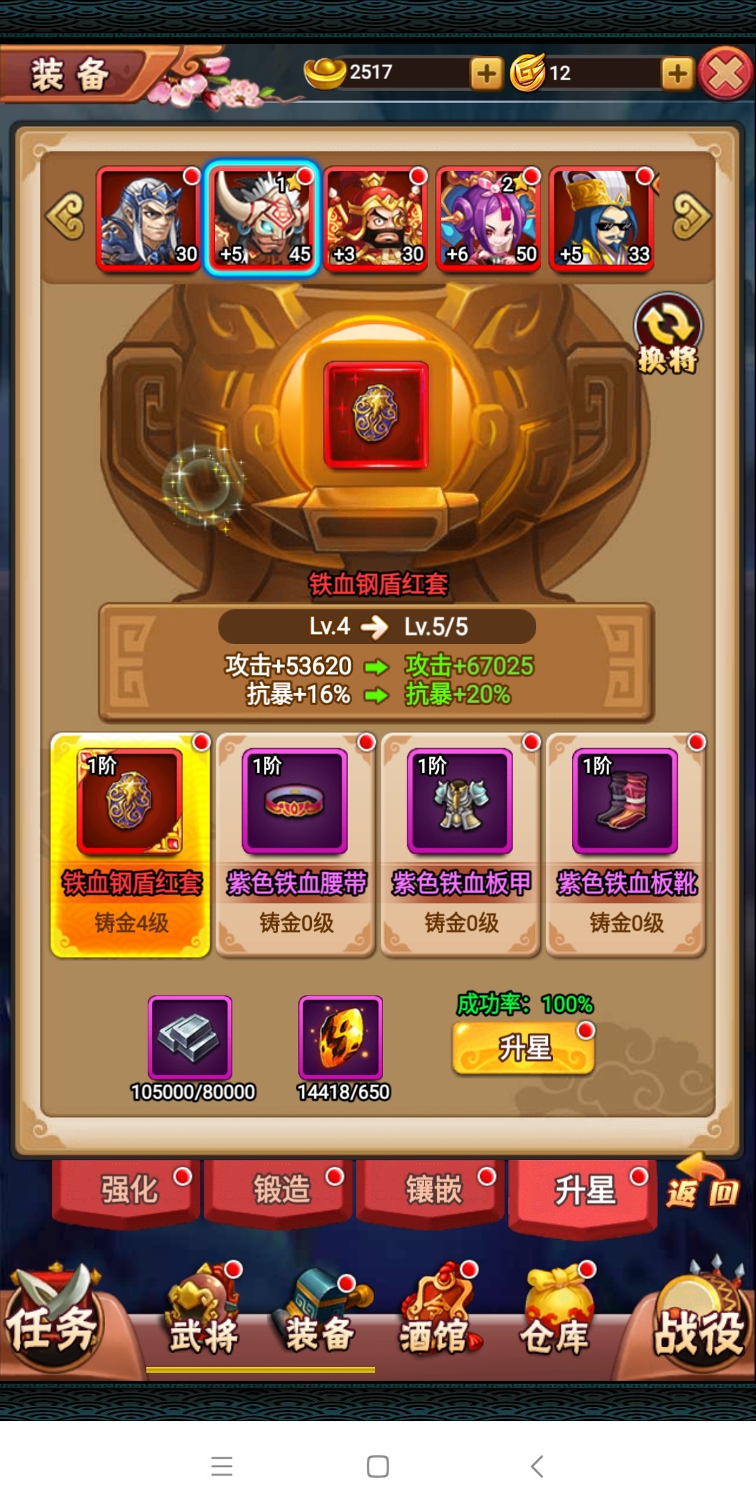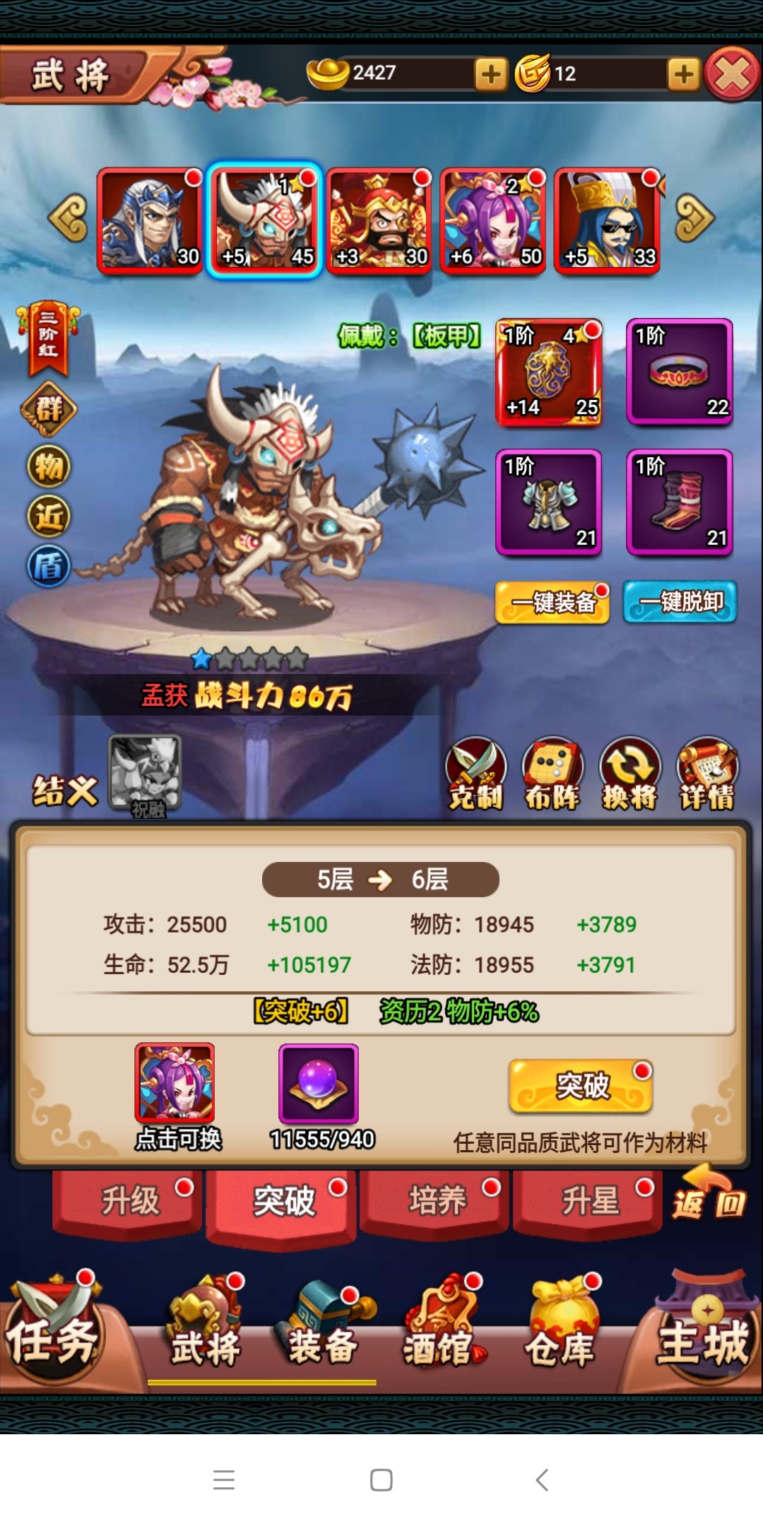 武将突破及升星能够显著增强武将战斗力,前者需要消耗突破丹,每突破1层可大幅增强四围属性并加强资质;后者则需要消耗升星丹,可提高武将星级,升星后的武将比低星级的成长潜力更大。