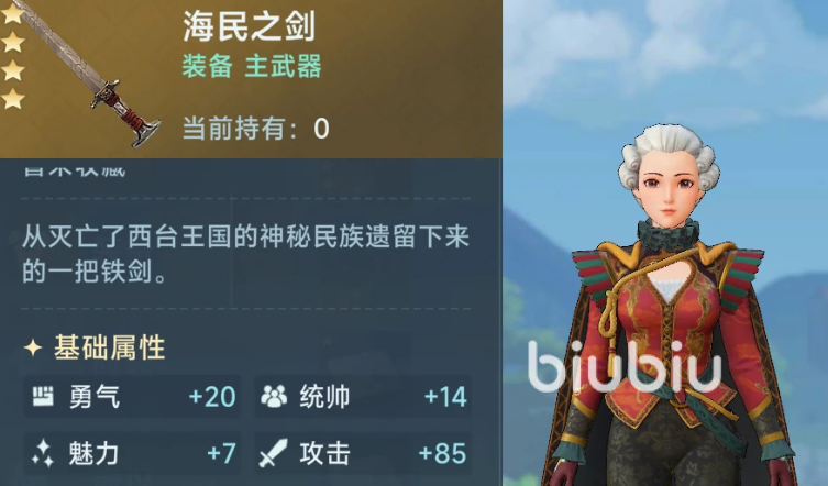 以上是大航海时代传说海民剑的获取方法,这件装备能给我们附带25点的攻击加成,还能提供剑术、勇气、魅力、统帅和划船的属性点,是在海战中非常适合作为排船追击的主力武器,想要的一定要按照以上方法耐心去做。