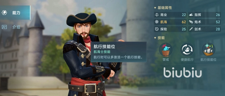艾里奥特主要价值体现在航海技能上,拥有便捷航行和航行技能,第三个技能是增加了一个技能位,能够缓解大家钓鱼运用,警戒瞭望以及划船之间的冲突。这个角色在炮术和航海上很突出,一般放置在舵位和炮位上。