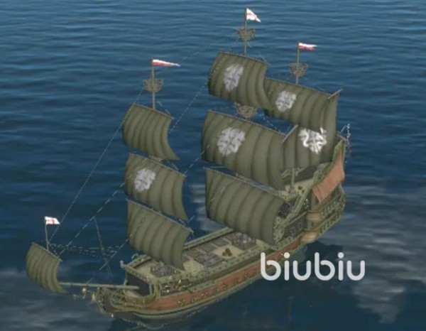 冒险号,风帆与划桨的混合动力结构,各种海况下都有不俗的适航性。必须通过商城获取,更显珍贵。如果想发挥它的最大潜力,建议选“私掠海盗”职业,有提升掠夺能力的技能。在改造方面,冒险号更偏向于白刃战斗,通过增加钩爪、接弦板来增强登船能力,搭配链弹炮破帆控速,便可迅速逼近敌船展开近战。