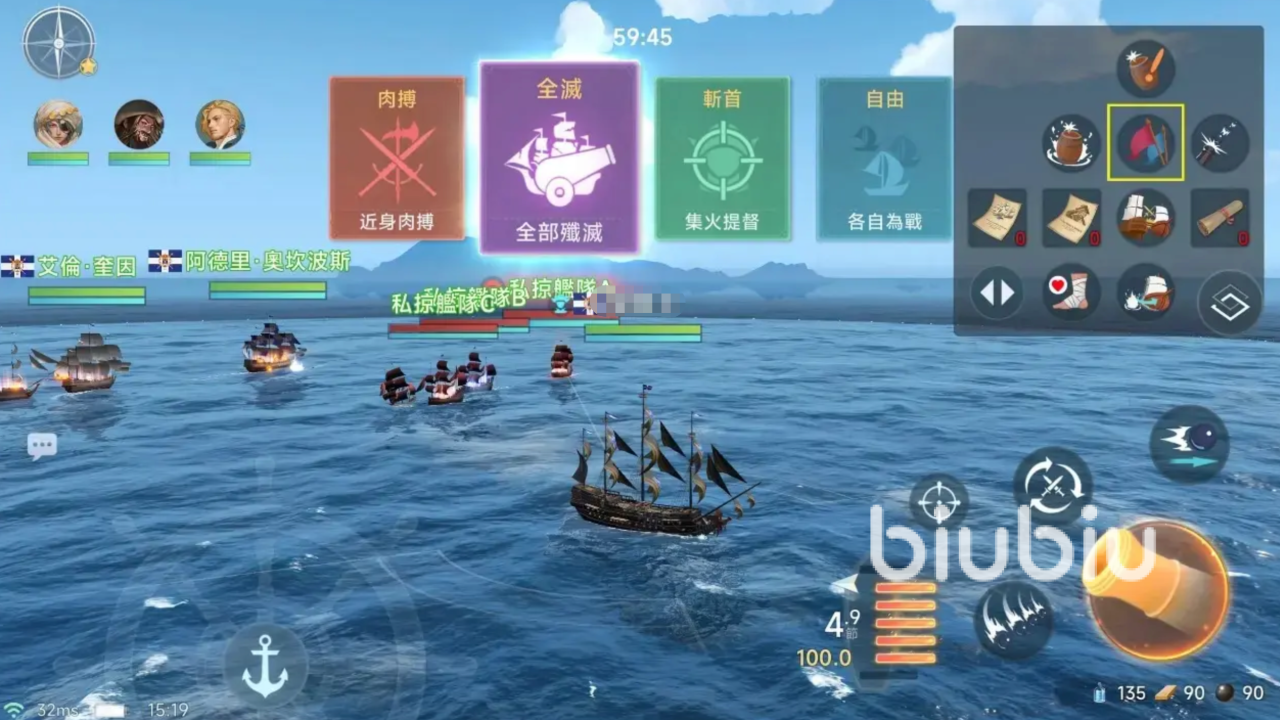 链弹炮则是一种专门针对敌舰机动性的特殊武器,攻击会直接瞄准敌舰的帆部,对航速造成严重打击。这种限制移动的特性使得链弹炮在追击或遏制敌方逃脱时有着极大优势,尤其适合搭配白刃战或近战强袭策略,为我方创造进入接战范围的机会,是偷袭与围猎流派的首选。