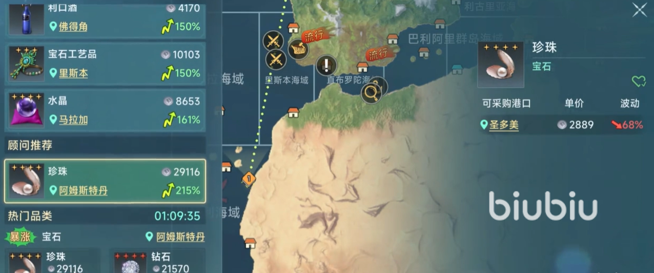 有一部分玩家可能是在该季节,但是有个很大的问题就是自身是没有任何珍珠的,会错过这次机会,这个是不用担心的,玩家们可以去圣多美地区,这个地区拥有大量的珍珠,玩家们跟当地的商人进行协商,如果珍珠的价格普遍还是比较低的,那么就可以大量购买用于航线的运输。