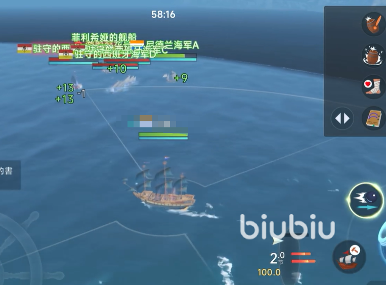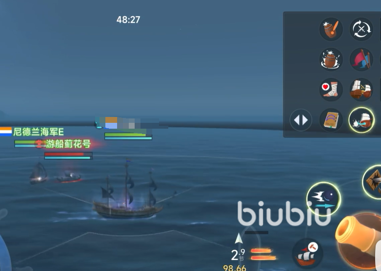 接下来可能还剩下4只船舰,大概在吸引一艘船舰就可以了,也是对准最远的一艘船,等这艘船脱离蓟花号包围的情况下,玩家们就可以将其一炮带走,接下来剩三艘船了,这时候对面的船只就会打乱开始分散。