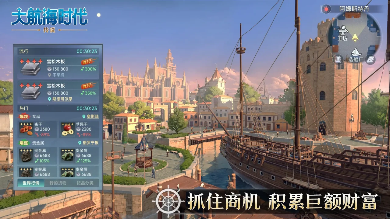 在大航海时代传说里,贸易可是获取金币的核心手段。游戏里每个港口的商品价格都不一样,这就是赚钱的好机会。通过低买高卖的操作,就能轻松赚取丰厚的差价。在选择商品时,要优先考虑那些热门且利润空间大的商品,这些商品往往在不同港口之间的价格差异较大,能够为我们带来更高的利润。同时还需要关注港口的供需关系,这样就能更加精准地选择购买和出售的商品,提高贸易的成功率和利润。