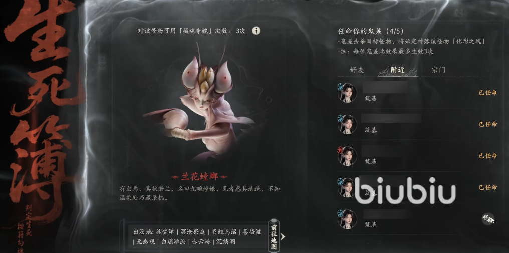 通过生死簿了解了这些精怪的习性和特点之后,还能利用生死簿的【摄魂夺魄】功能帮助玩家在野外捕捉3次精怪,注意会有一定失败的概率。另外在捕捉的时候,还能借助附近的好友来辅助捕捉。