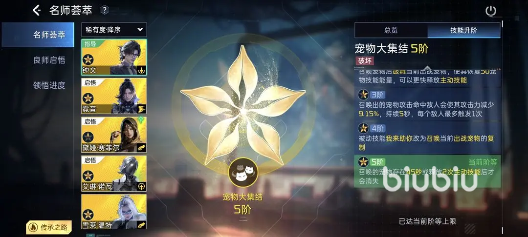3阶时,召唤的宠物攻击命中对手后,会让该目标的攻击力削弱9.15%,效果持续5秒,每个敌人都能触发1次。4阶后,被动的效果会改回将当前出战的宠物复制并召唤出来。5阶后,宠物被召唤45秒,或者使用了2次主动后才会消失。