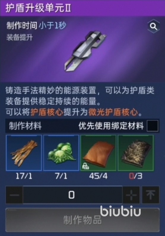 每位幸存者在初期完成引导任务后就将永久获得一个护盾核心,为角色带来护盾、防御、全系抗性属性加成,增强各位的存活能力。升级消耗护盾升级单元,该道具在随身制作中做。