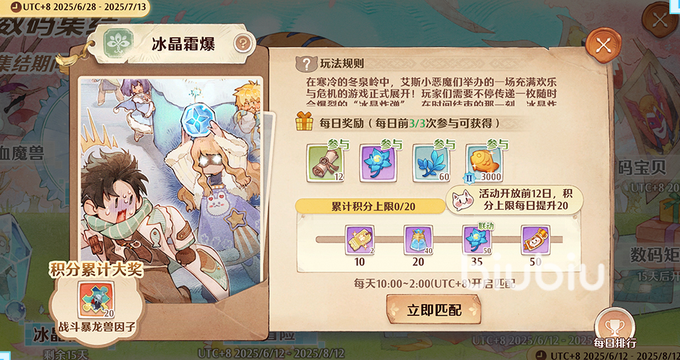 本次数码宝贝联动版本将于6月12日开始,截止8月12日,长达2个月的时间,联动结束不会再返场,喜欢的玩家千万不要错过哦!联动氛围多个阶段,目前只公布了一阶段的部分玩法,活动详情以上线版本为准哦!