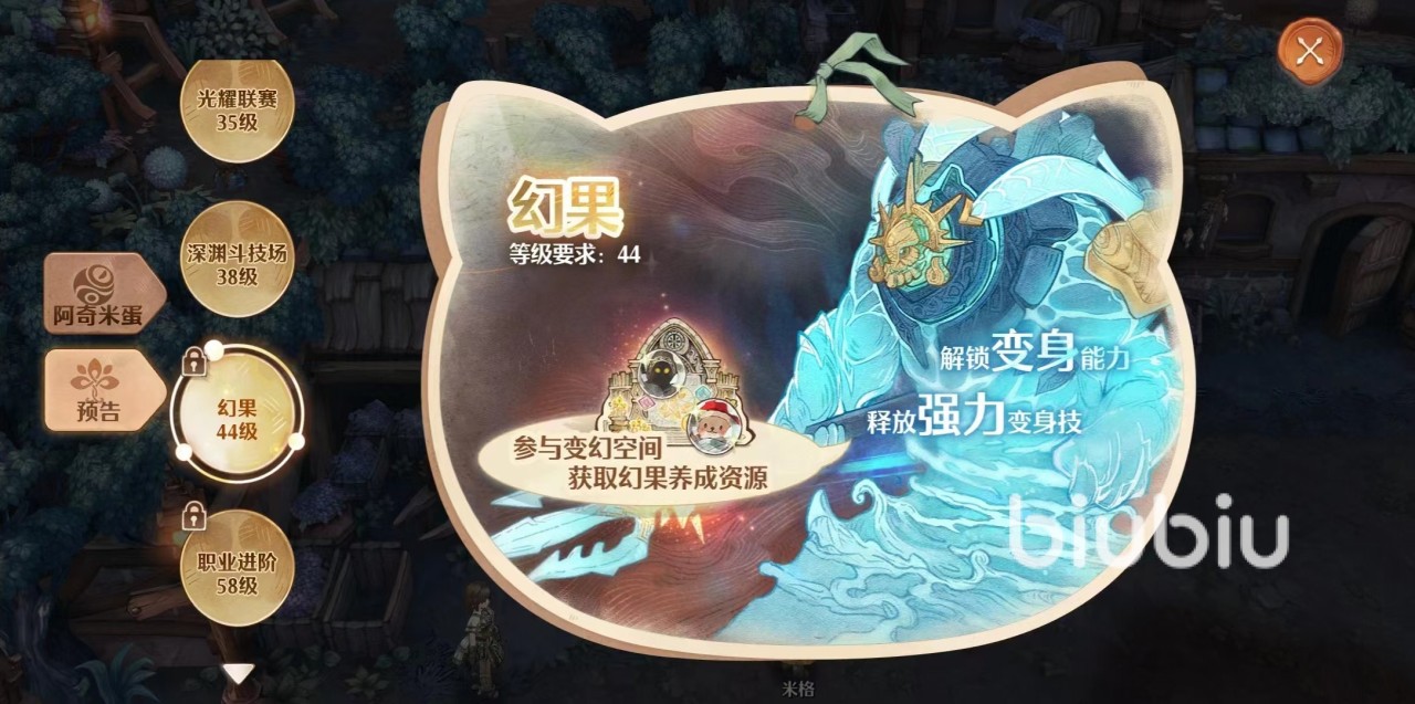 幻果玩法首先就是需要玩家们的等级达到了要求之后才能进入的界面。同时如果没有幻果的话也是无法启动幻果中的各种玩法。幻果需要玩家们在一些副本中获得,比如说魔神试炼或者是深渊竞技场中获得。同时幻果也是有等级划分的。不同的品质的幻果对于角色的属性加成效果也是不同的。