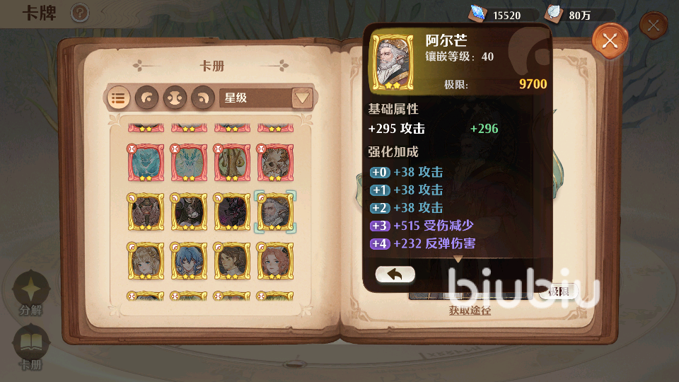 他一共会有八个强化等级,强化到满级的时候,可以拥有509的反弹伤害,每强化一级,反弹伤害都会增加一点,当镶嵌两张同名卡的时候,我们还可以额外累积490的攻击效果,三张的话还能增加820的反弹伤害能力。如果能集齐全套,并且将其都强化到八级的时候,那么我们的反弹伤害将翻倍提升,最高可以增加1060。