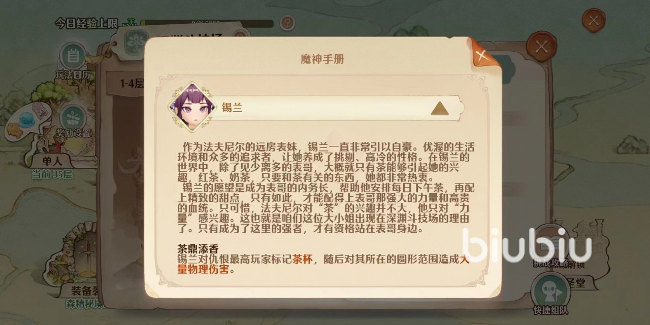 在这个副本中是有收官boss的,她的名字叫锡兰。她作为泪光地图中法夫尼尔的亲戚,因为从小生活条件优渥所以她只对“茶”感兴趣,因此在技能上都是和茶相关的技能。