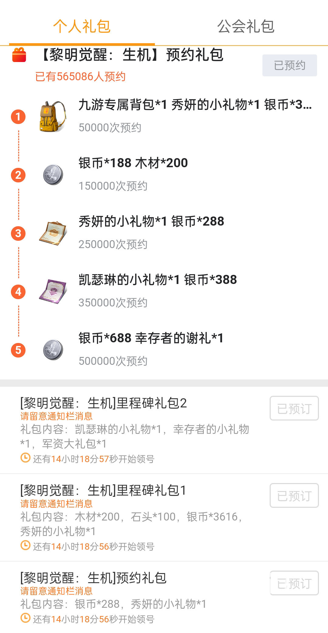 在九游平台预约的话可以领取平台专属的背包还有秀妍的小礼物,数量可观的银币。现在大家就可以直接点预定,然后等游戏正式上线前夕就可以领号了。基本上给到的都是一些生存资源,像是木材、银币之类的。