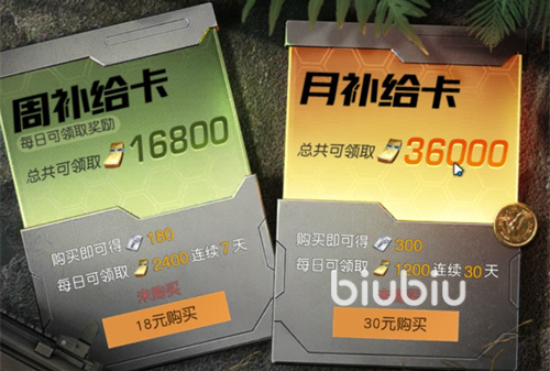 1、周卡:价格不算太贵,可以领取7天领取到奖励,总的来说非常的丰富。