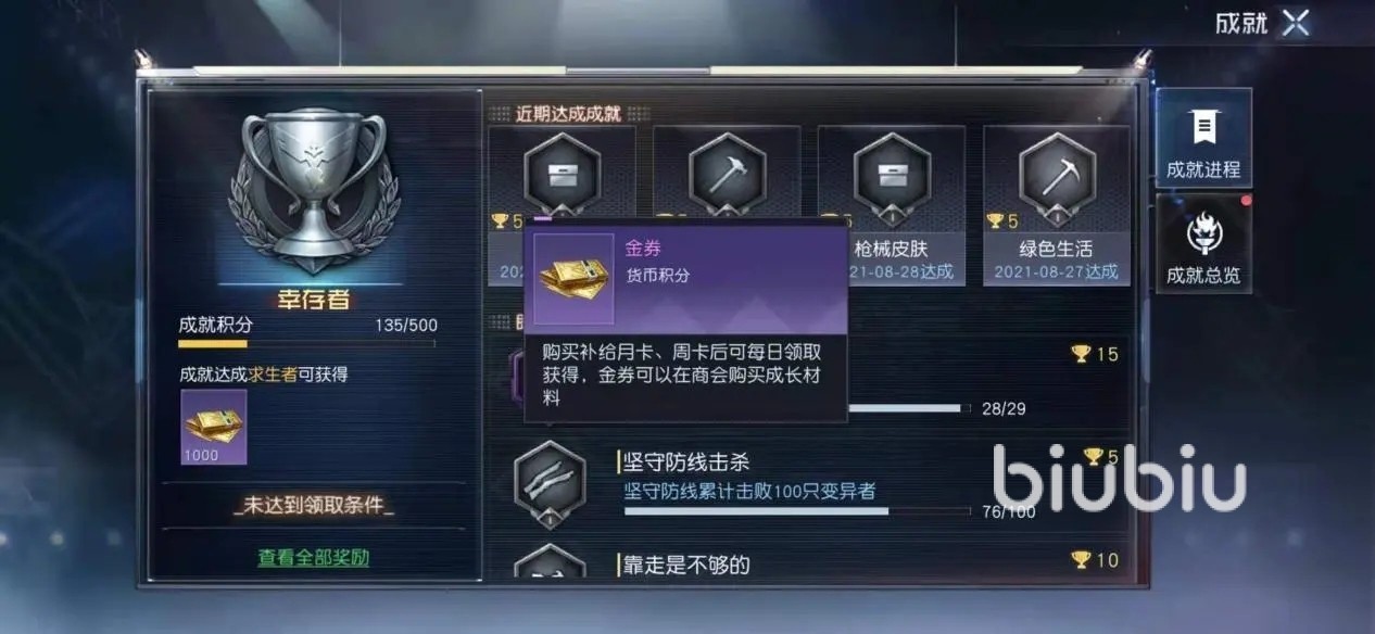 然后是各种成就解锁时可以得少量金券,以及卖掉高级武器也是少量,这两个属于顺带得到,不能当做主力,毕竟没那么多武器可卖,成就也是一次性奖励。