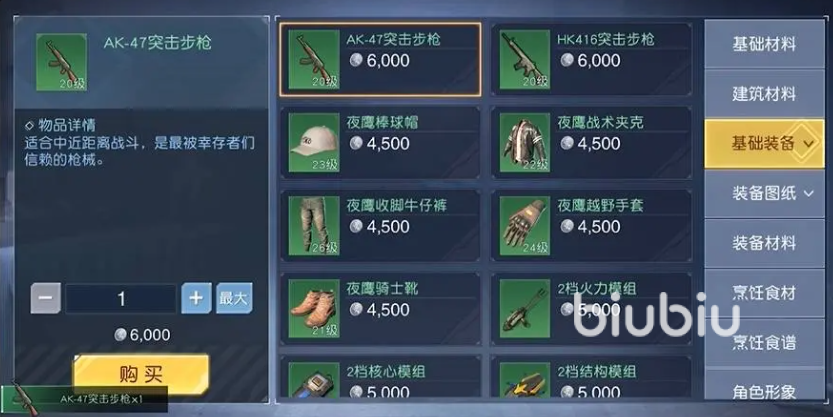 不过在基础材料和建筑材料分类中,不推荐专门用银币购买,这些都可以花时间去野外采集一下,如果偶尔补一些小的合成建造缺口是没问题的。银币主要用来买图纸和装备合成材料才是正确选择。