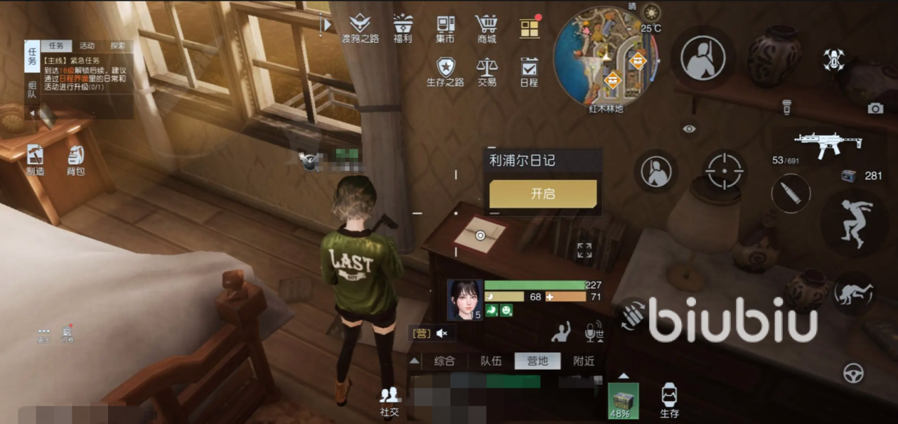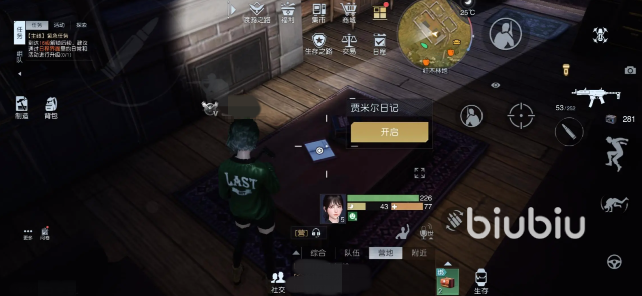 首先来到红木营地这里,在这里可以看到这类东西的分布异常的多,在5214.-5104这里有多个日记分布,大多藏在一些隐蔽的地方,可以在找到之后直接打开阅读里面你的情报。
