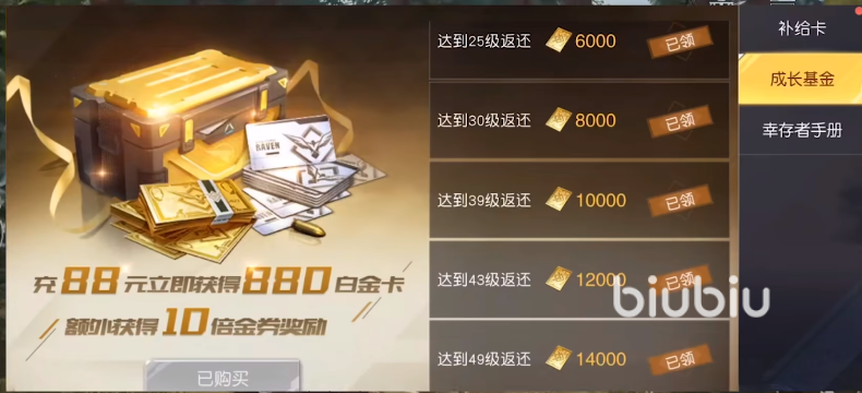 开服游戏个成长基金,这是对所有新手的氪金福利,不氪金大概就没有了,非常的有诱惑力的一个奖励,但是只是休闲的玩家可以不买。