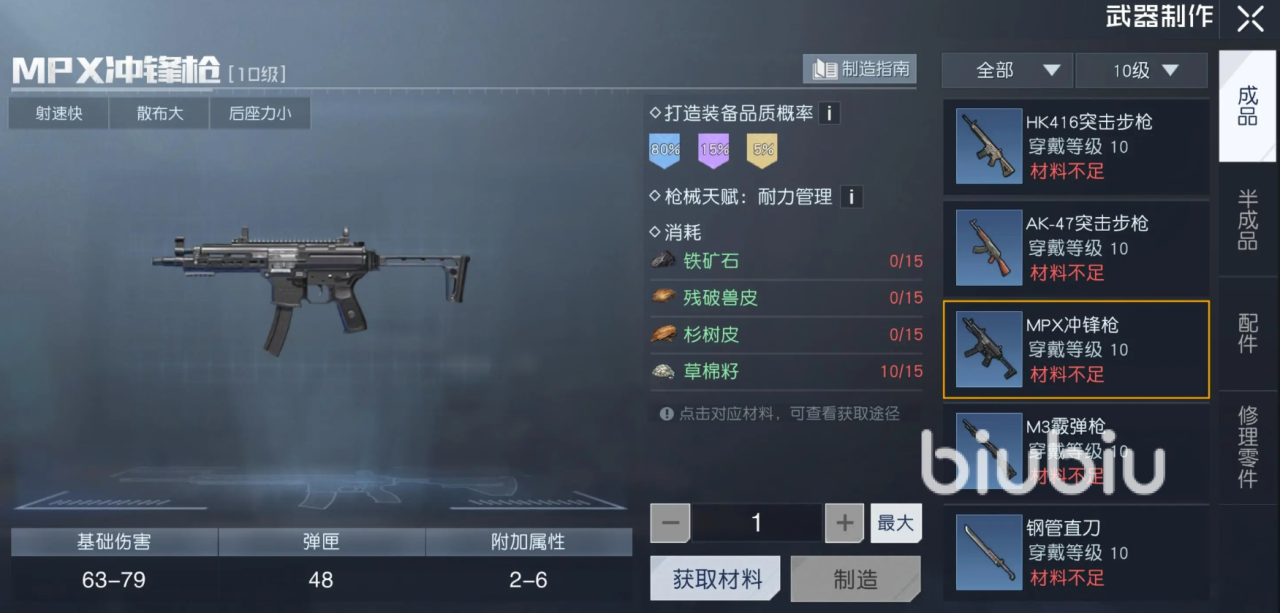 特别是对于萌新玩家来讲,较低的后坐力使得玩家们可以更好的控枪练枪,散布大不是问题,反正又不是玩什么枪械比赛,只是单纯开荒打怪,这点散步并不算什么。另外,稍微有点麻烦的就是这个枪的制作方面,部分材料前期不容易获得,可能会有部分玩家较晚出这把枪,但总体来说,花个几十分钟去肝一把枪,在15级之前还是很容易的,到时候就是愉快的开荒环节了。
