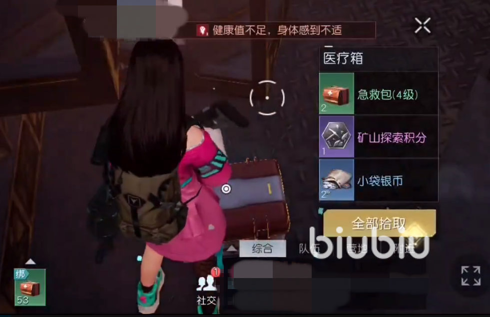 首先来到一个蓝色的大卡车这里很多玩家会忽略这里,可以先爬上车子然后站在上面扩大视野,如果玩家第一次没来过肯定以为车子上面有箱子,其实不然,这里的箱子藏在了更为隐蔽的地方,需要一直往车子后面跑,可以看到一个架子,在它的下面可以看到一个被藏起来的医疗箱子。
