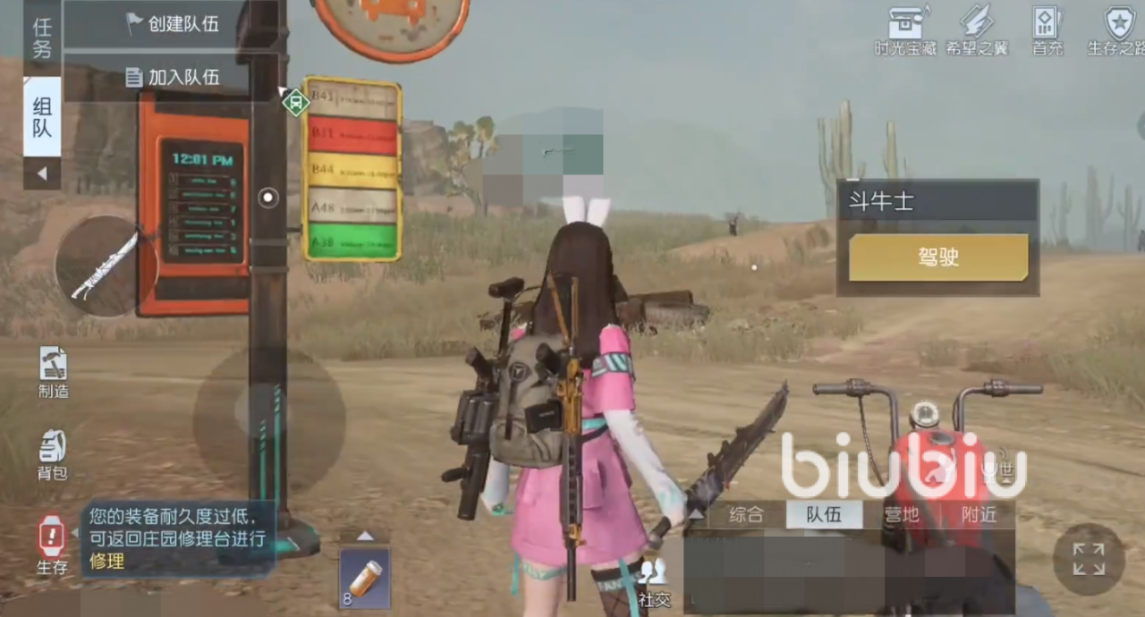 首先传送到这里,可以看到一个公交站牌子,镜头往右边靠近可以看到一辆废弃的货车,这个车子的特点就是轮胎废了,而且在草丛当中不是很显眼,所以很多人第一次就是死活找不到这个车子的位置。