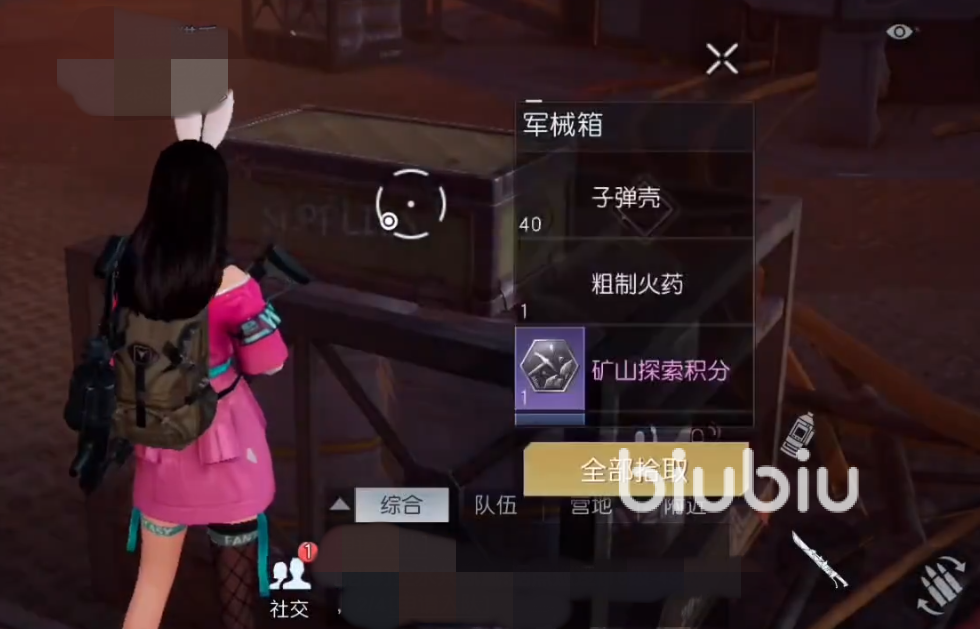 首先传送到正门的门口,门口有一个环状的楼梯,在这里直接上去可在图示的地方看到一个医疗宝箱,里面有很多多的医疗物品以及银币,之后再在外面转一下,可以看到钢架的箱子上面有一个军械箱子,这个箱子里卖弄有材料还有积分。