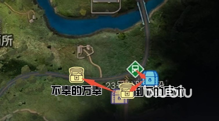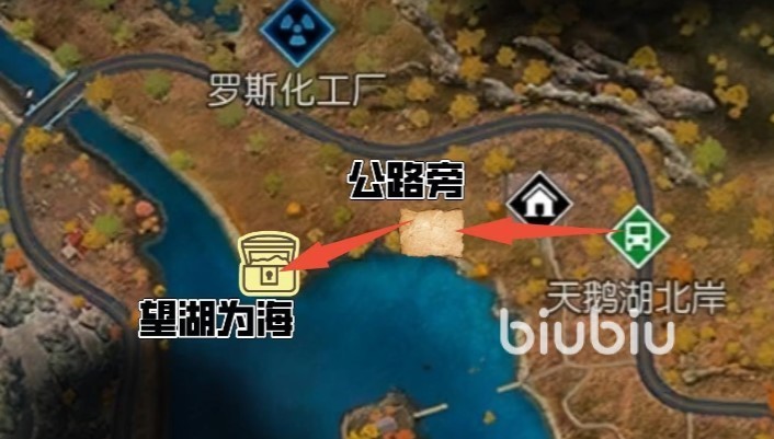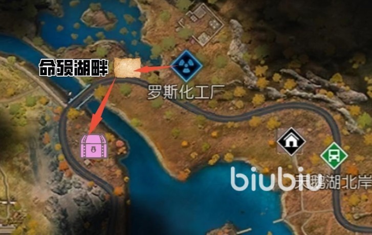 罗斯化工厂,落地后朝着左边走,在报废汽车里有遇难者,与其交互得到藏宝图,然后继续往左下角走,在红房顶上打开电源开关才能打开笼子拿到里面的箱子。另一边是落地后右上角有2个地下宝箱。