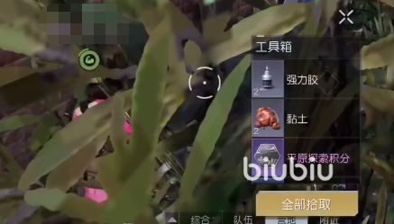 第一个箱子的坐标在中部平原地区,在这个地区中大家会看到两面墙,墙上会爬满藤蔓,大家需要撕掉这些藤蔓往里走,在最里面就可以看到这个箱子了,打开之后可以获得四个强力胶和一点探索积分。