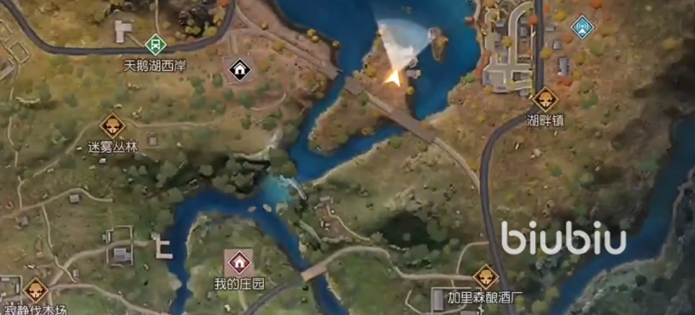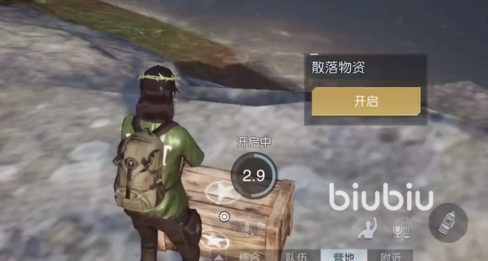 首先打开地图找到摩尔加油站,这里可以看到一条河流,这里的石头上面可以看到一个散落的物资的箱子,但是这个不是这次的目标,在这个位置上的时候就可以往水里跳了,在水里面藏着一个蓝色的箱子可以说非常的藏,眼睛不尖或者运气不好的玩家基本上找不到这箱子,