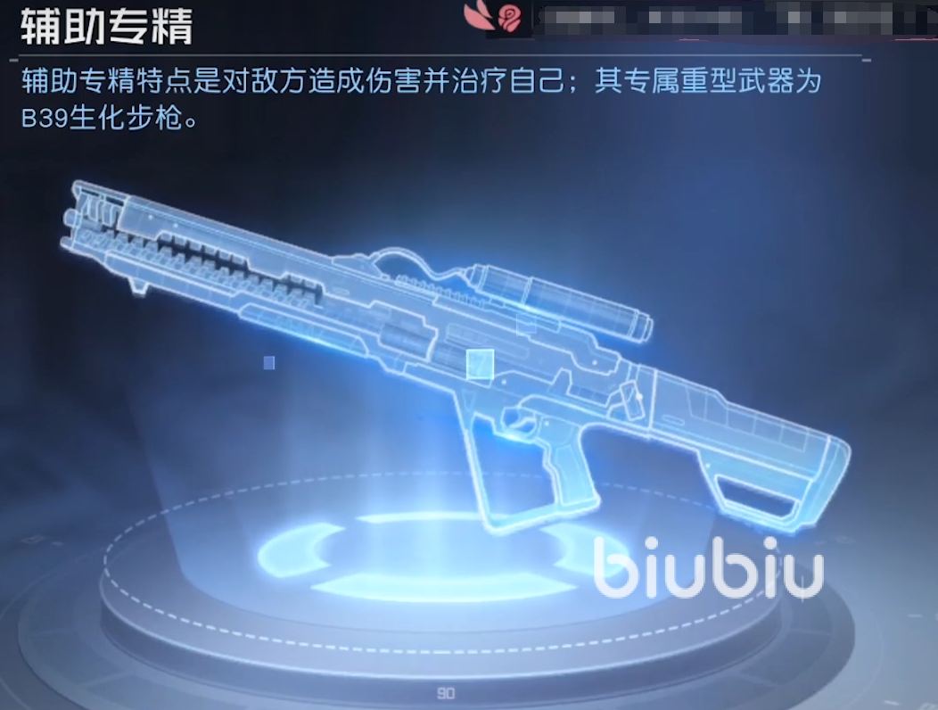 最后是辅助专精,这类专精非常直白就是辅助用,对应的武器是生化步枪,这把武器是游戏中唯一一把辅助类的武器,这个专精点出来之后可以给自己和队友增加增益buff,如果说队友里有大佬玩家,那只需要躲在后面让大佬去冲锋就行了,大佬玩家在增益buff的加成下可以说打怪就像噶韭菜一样简单,这套专精的加点为量子覆膜、协助作战、长效治疗、临时护盾。