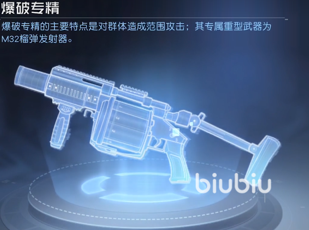游戏里的专精目前一共分为三种,分别是爆破专精、突击专精和辅助专精,首先是爆破专精,爆破专精对应的武器是榴弹炮这一类的重火力武器,点了这类专精之后这些武器造成的伤害会变化,加点方面主要点战术轰炸、强击风暴、韧性提升这几点。