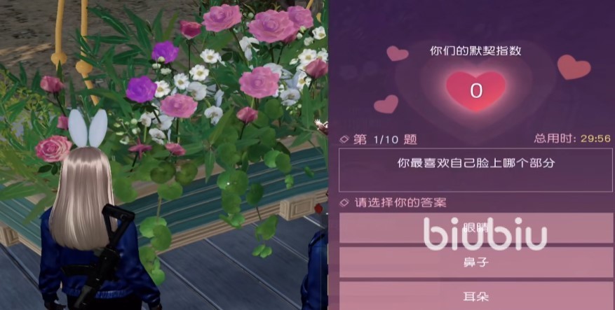 还有一个关于同居树的答题挑战,比较考验大家的默契,这个其实没什么难度,没有准确答案,只要双方选择同一项就可以了,算是培养默契吧!可以开着麦克风来答题。